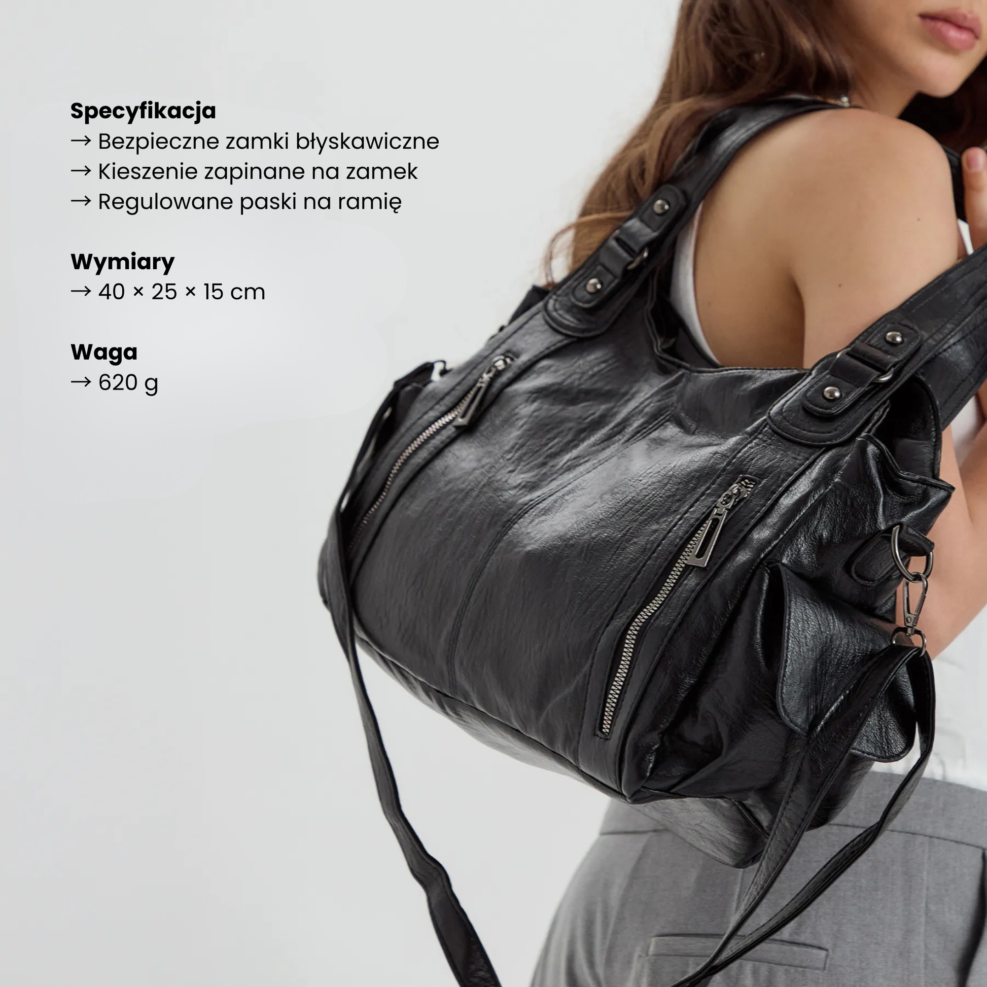 ✔ Wymiary: 40 × 15 × 25 cm — idealna na laptopa i codzienne niezbędniki